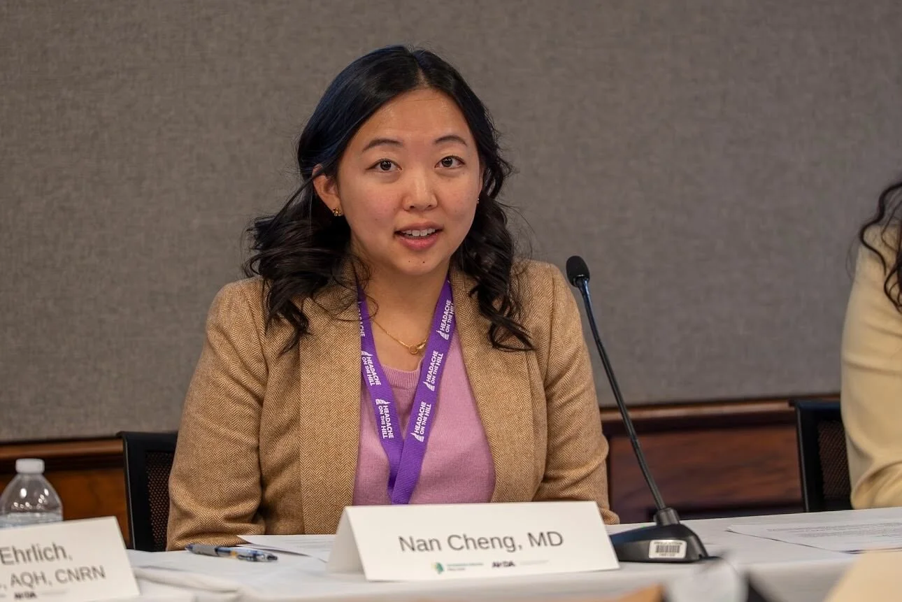 Dr. Cheng is also a board member of The Headache Alliance, a nonprofit organization dedicated to improving the quality of life for the 40 million Americans living with headache disorders. She is an active advocate for this community and meets regularly with Congressional representatives to support patients with headache disorders. In this capacity, Dr. Cheng was an invited panelist for a Congressional briefing at the Capitol Hill Policy Forum for Headache on the Hill.